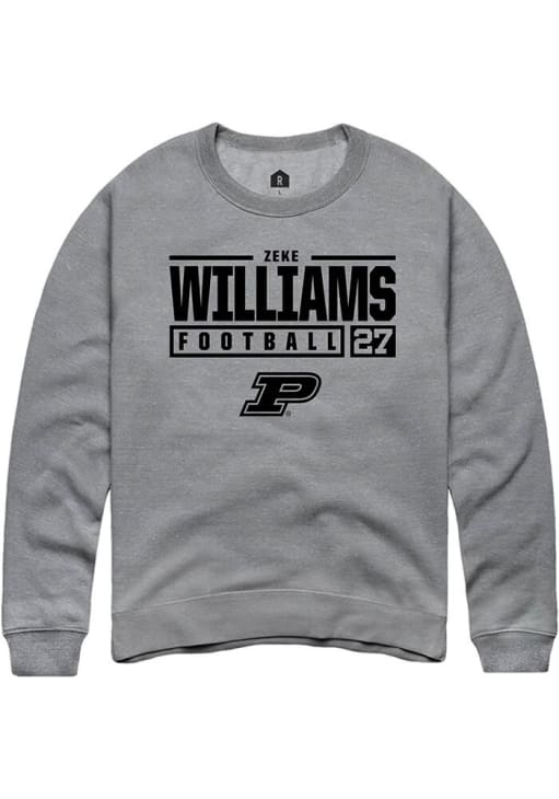 Zeke Williams Rally Mens Graphite Purdue Boilermakers NIL Stacked Box Crew Sweatshirt