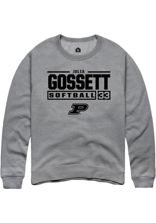 Julia Gossett Rally Mens Graphite Purdue Boilermakers NIL Stacked Box Crew Sweatshirt