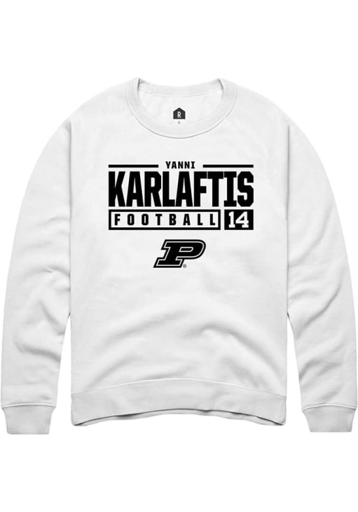 Gear up for the ultimate game day experience with this remarkable Purdue BoilermakersMens White NIL Stacked Box Crew Sweatshirt! Designed with the true fan in mind, this Boilermakers Long Sleeve Crew Sweatshirt features a custom graphic with player's name and number. Stay warm and comfortable with this Mens Purdue Boilermakers Crew Sweatshirt.