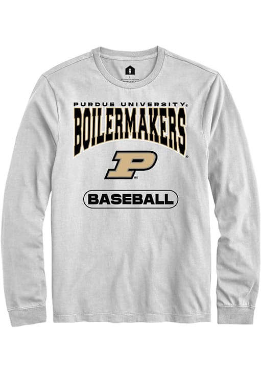 Show your Purdue Boilermakers spirit in this Purdue White T Shirt! This Purdue Baseball Long Sleeve T Shirt makes a great layer for cooler nights cheering on the Boilermakers. Featuring a digitally printed graphic, this Purdue Boilermakers Long Sleeve Tee is an essential addition for every fan. Hail Purdue!
