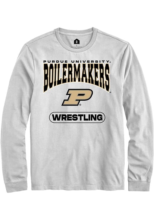 Show your Purdue Boilermakers spirit in this Purdue White T Shirt! This Purdue Wrestling Long Sleeve T Shirt makes a great layer for cooler nights cheering on the Boilermakers. Featuring a digitally printed graphic, this Purdue Boilermakers Long Sleeve Tee is an essential addition for every fan. Hail Purdue!