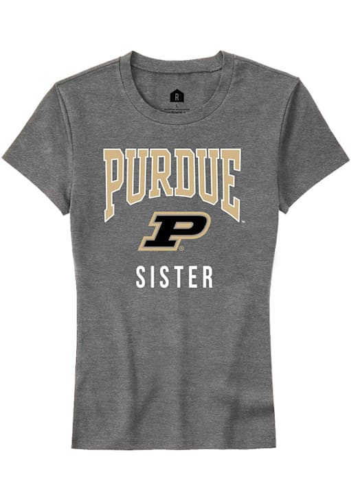 Display your team spirit with this remarkable Purdue Boilermakers Grey Sister Short Sleeve T-Shirt! The Purdue Short Sleeve Tee showcases a digitally printed graphic that truly sets it apart. Stand out from the crowd and proudly declare your allegiance to the Boilermakers with this exceptional Grey Purdue T-Shirt. Hail Purdue!