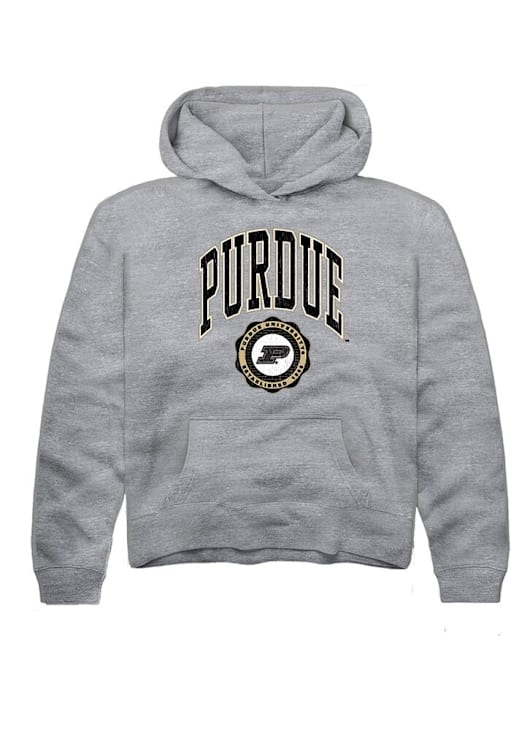 Youth Purdue Boilermakers Grey Rally Arch Seal Long Sleeve Hooded Sweatshirt