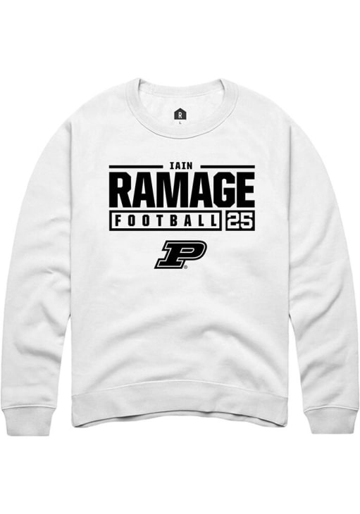 Iain Ramage Rally Mens White Purdue Boilermakers NIL Stacked Box Crew Sweatshirt