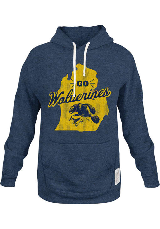 Go to gamedays in style in this Youth Blue Michigan Wolverines Original Retro Brand Wolverine State Logo Hooded Sweatshirt! This Wolverines Hoodie features a printed team graphic that will be sure to keep you warm and cozy.