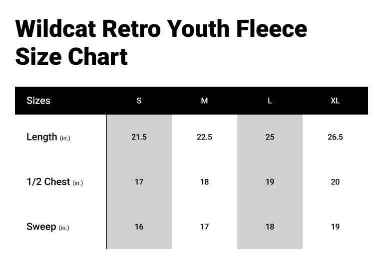Size Chart for Youth Michigan Wolverines Blue Original Retro Brand Wolverine State Logo Long Sleeve Hooded Sweats..