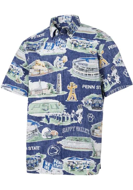 Elevate your style for any occasion with this sophisticated Penn State Nittany Lions Short Sleeve Dress Shirt! Let your Nittany Lions pride show in this Navy Blue Scenic Button Down Shirt. This Scenic Penn State Dress Shirt is perfect for showing your Nittany Lions pride at the office. Featuring a all over print, this Penn State Nittany Lions Dress Shirt has a subtle touch of fan support.