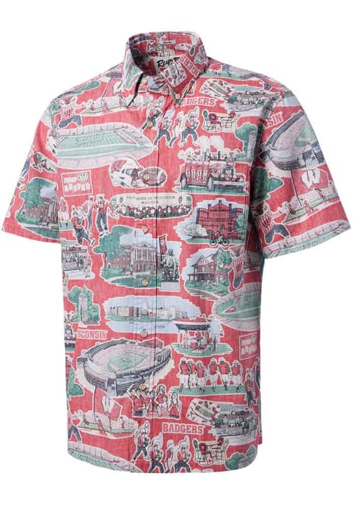 Elevate your style for any occasion with this sophisticated Wisconsin Badgers Short Sleeve Dress Shirt! Let your Badgers pride show in this Red Scenic Button Down Shirt. This Scenic Wisconsin Dress Shirt is perfect for showing your Badgers pride at the office. Featuring a all over print, this Wisconsin Badgers Dress Shirt has a subtle touch of fan support.