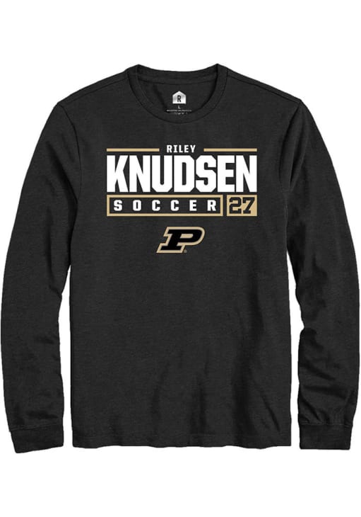 Riley Knudsen Rally Mens Black Purdue Boilermakers NIL Stacked Box Tee
