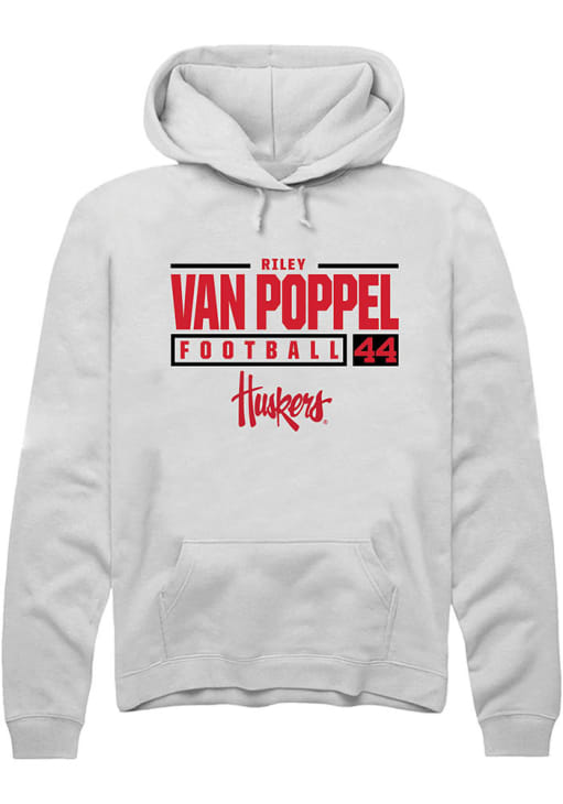 Riley Van Poppel Rally Mens White Nebraska Cornhuskers NIL Stacked Box Hooded Sweatshirt