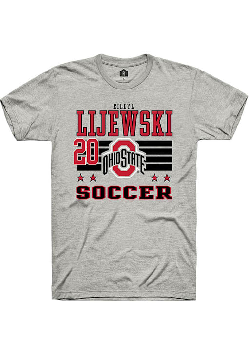 There will be no mistaking your The Ohio State University support when you wear this Ohio State Buckeyes Mens Ash NIL Striped Short Sleeve! Look great and stand out from the crowd in this Ohio State Buckeyes Player T Shirt, which features a NIL graphic.
