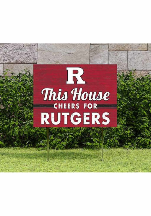 Rutgers Scarlet Knights 18x24 This House Cheers Yard Sign will let everyone know you root for the Scarlet Knights proudly. This Yard Sign features a UV weather-resistant ink which won't fade over time.