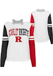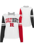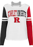 Show your style at school in this Girls Red Rutgers Scarlet Knights Color Block Long Sleeve T-shirt! This Long Sleeve Tee features a screen print team graphic. You'll be cozy and comfortable head to the game or class with the Scarlet Knights Girls Rutgers Long Sleeve T-shirt.