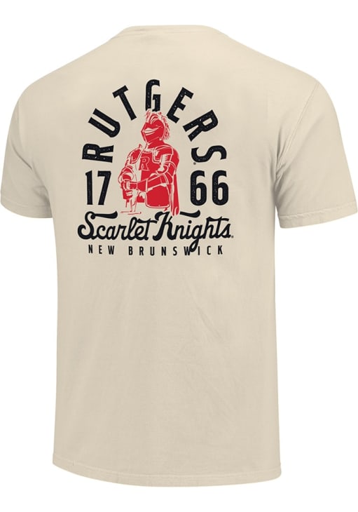 Display your team spirit with this remarkable Rutgers Scarlet Knights Ivory Mascot Overlay Short Sleeve T Shirt! The Rutgers Short Sleeve Tee showcases a screenprint team logo on front chest and team graphic on back that truly sets it apart. Stand out from the crowd and proudly declare your allegiance to the Scarlet Knights with this exceptional Ivory Rutgers T Shirt. Go Knights!