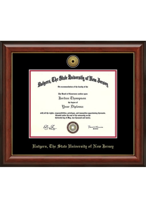 Rutgers Scarlet Knights Lancaster Diploma Frame is a great way to keep your Scarlet Knights memories close. You'll love looking at your favorite Scarlet Knights moments with this Diploma Frame, which features a showcase for your Rutgers University diploma in a USA-made frame. Overall Size 17.625" x 15.125". Go Knights!