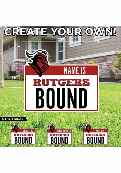 Product Details Product Details First Name ONLY.Approximatley 19"x22"Cut to Shape Weatherproof PlasticMetal Stakes IncludedFull Color PrintCustomized Bound Sign with your name! Officially Licensed Rutgers Scarlet Knights Personalized School Bound Yard Sign will let everyone know you root for the Scarlet Knights proudly. This Yard Sign features a weather resistant material.