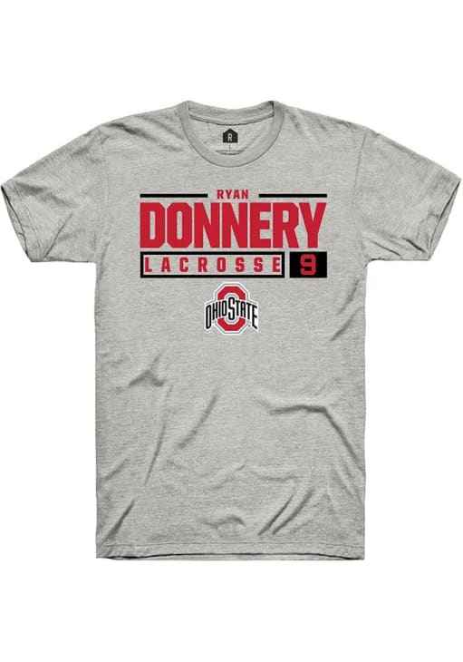 Ryan Donnery Ash Ohio State Buckeyes NIL Stacked Box Short Sleeve T Shirt