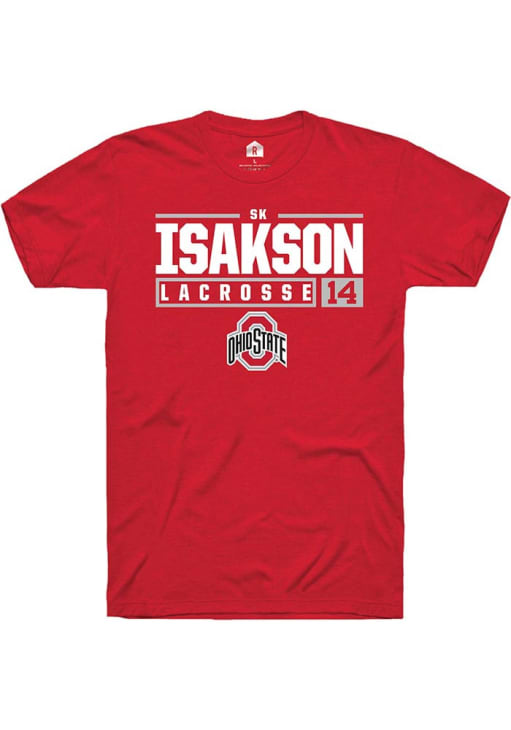 SK Isakson Red Ohio State Buckeyes NIL Stacked Box Short Sleeve T Shirt