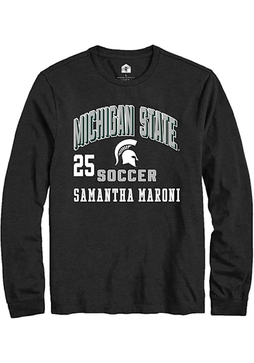 Embrace the spirit of your favorite player in this Michigan State Spartans Black NIL Arch Logo Samantha Maroni Long Sleeve Player Tee! This Player T Shirt features a NIL graphic, so everyone will know you cheer for MSU, Samantha Maroni! This is the perfect Spartans Player Tee for game days. Go Spartans!