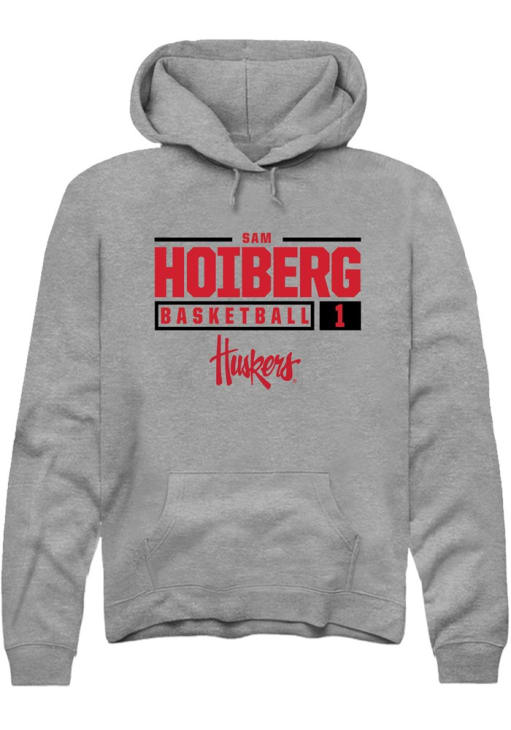 Samuel Hoiberg Rally Mens Graphite Nebraska Cornhuskers NIL Stacked Box Hooded Sweatshirt