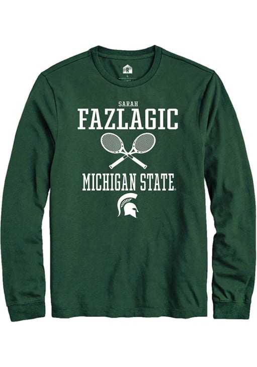 Show your Michigan State Spartans spirit in this MSU Green T Shirt! This MSU NIL Sport Icon Long Sleeve T Shirt makes a great layer for cooler nights cheering on the Spartans. Featuring a custom graphic with player's name and number, this Michigan State Spartans Long Sleeve Tee is an essential addition for every fan. Go Spartans!