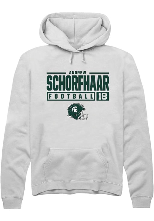 Andrew Schorfhaar Rally Mens White Michigan State Spartans NIL Stacked Box Hooded Sweatshirt