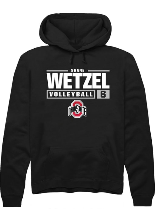 Shane Wetzel Rally Mens Black Ohio State Buckeyes NIL Stacked Box Hooded Sweatshirt