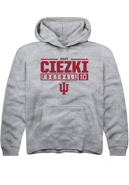 Shay Ciezki Rally Youth Grey Indiana Hoosiers NIL Stacked Box Style Long Sleeve Hooded Sweatshirt