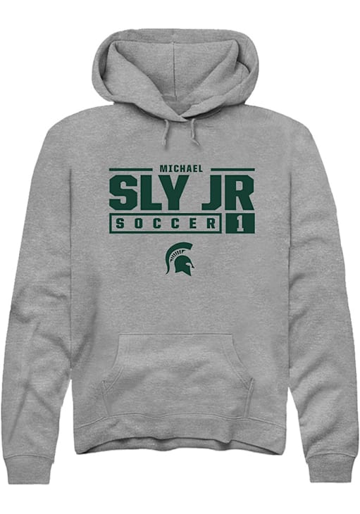 Michael Sly Jr Rally Mens Graphite Michigan State Spartans NIL Stacked Box Hooded Sweatshirt