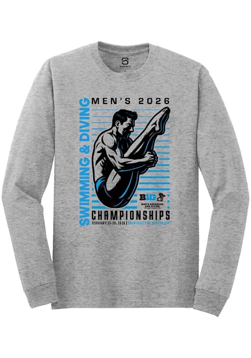 Show your Big Ten spirit in this Big Ten Grey T Shirt! This Big Ten 2026 Men's Swimming & Diving Championships Long Sleeve T Shirt makes a great layer for cooler nights cheering on the Big Ten. Featuring a team graphic, this Big Ten Long Sleeve Tee is an essential addition for every fan. !