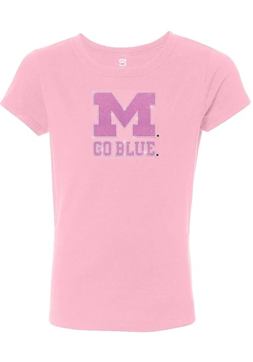 Show your support for Wolverines in this Girls Pink Michigan Wolverines Short Sleeve Fashion Tee! This Embellished Logo Fashion T-Shirt features a Embellished design that pairs perfect with any wardrobe. Get ready to show pride for your favorite team as you cheer "Go Michigan"