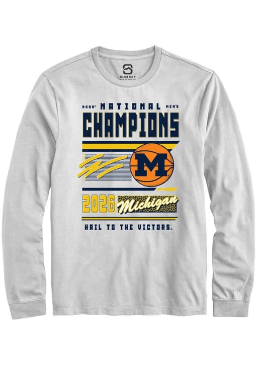 Show your Michigan Wolverines spirit in this Michigan White T Shirt! This Michigan MBB National Champs 2026 Magazine Long Sleeve T Shirt makes a great layer for cooler nights cheering on the Wolverines. Featuring a championship team logo, this Michigan Wolverines Long Sleeve Tee is an essential addition for every fan. Go Michigan!