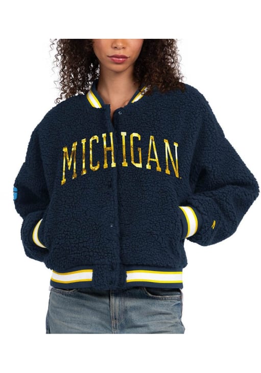 Stay warm and cozy with this Michigan Wolverines Womens Navy Blue Interception Light Weight Jacket! Cheer on the Wolverines in this Michigan Light Weight Jacket. With a sequin embroidered team name on center chest and team conference on right sleeve, you won't want to be caught without this Light Weight Jacket on gameday.