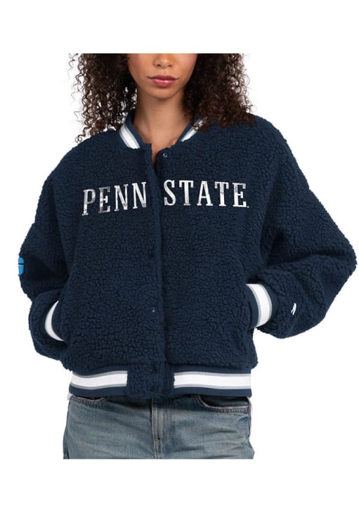 Stay warm and cozy with this Penn State Nittany Lions Womens Navy Blue Interception Light Weight Jacket! Cheer on the Nittany Lions in this Penn State Light Weight Jacket. With a sequin embroidered team name on center chest and team conference on right sleeve, you won't want to be caught without this Light Weight Jacket on gameday.