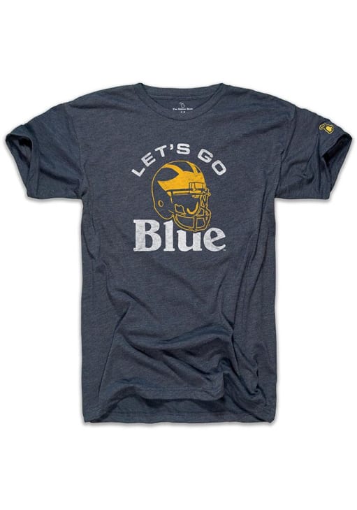 Support your Michigan Wolverines in this Navy Blue Short Sleeve Fashion Tee! This Football Let's Go Blue Fashion T Shirt features a screen print graphic. Be ready to yell "Go Michigan" when you wear this Michigan Short Sleeve Fashion T Shirt in your favorite stadium or on the street.