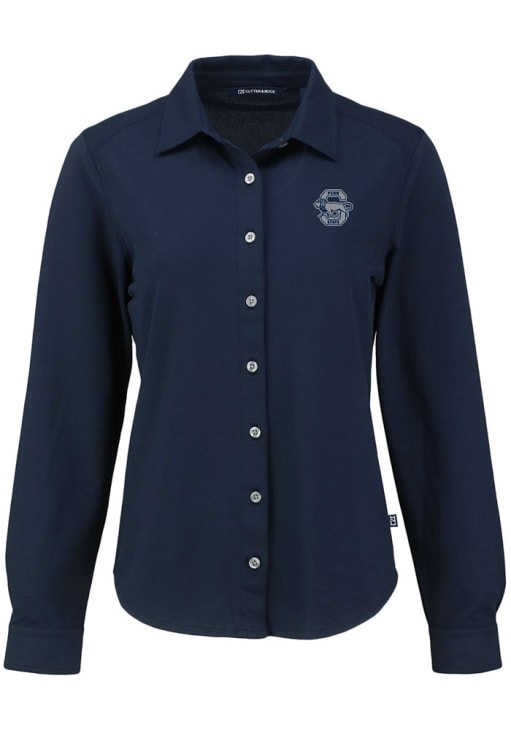 Show your Nittany Lions spirit show in the office with this Penn State Nittany Lions Dress Shirt! Embrace your team spirit and showcase it proudly in this Womens Navy Blue Vault Advantage Soft Pique Long Sleeve Long Sleeve Button Down Shirt. This Long Sleeve Dress Shirt features a team logo on chest.