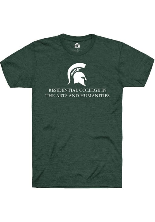 Display your team spirit with this remarkable Michigan State Spartans Rally Green Residential College in the Arts and Humanities Short Sleeve T Shirt! The MSU Short Sleeve Tee showcases a screenprint of team graphic and Residential College in the Arts and Humanities on front chest that truly sets it apart. Stand out from the crowd and proudly declare your allegiance to the Spartans with this exceptional Green MSU T Shirt. Go Spartans!
