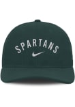 Product Details Product Details Nike Rise Performance Structured AdjustableFront embroidered team wordmarkNike swoosh on front of crownPerforation on front and back panelsBack plastic snap closurePOLYESTERCurved BillLow CrownStructuredWipe clean with cloth or cleaning kitImported Officially Licensed This Green Spartans Adjustable Hat features a front embroidered team logo.