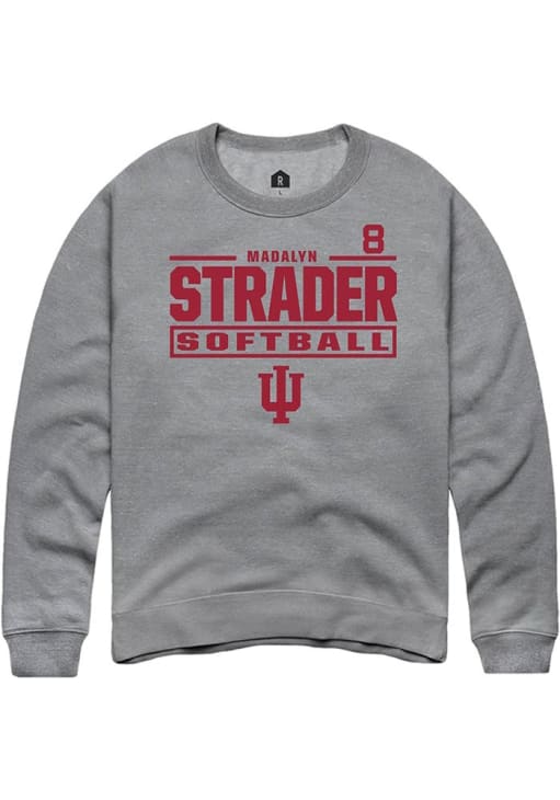 Madalyn Strader Rally Mens Graphite Indiana Hoosiers NIL Stacked Box Crew Sweatshirt