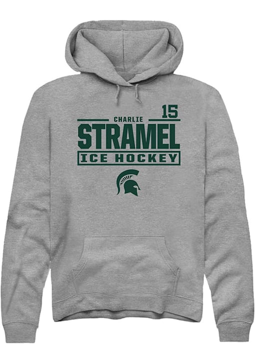 Charlie Stramel Rally Mens Graphite Michigan State Spartans NIL Stacked Box Hooded Sweatshirt