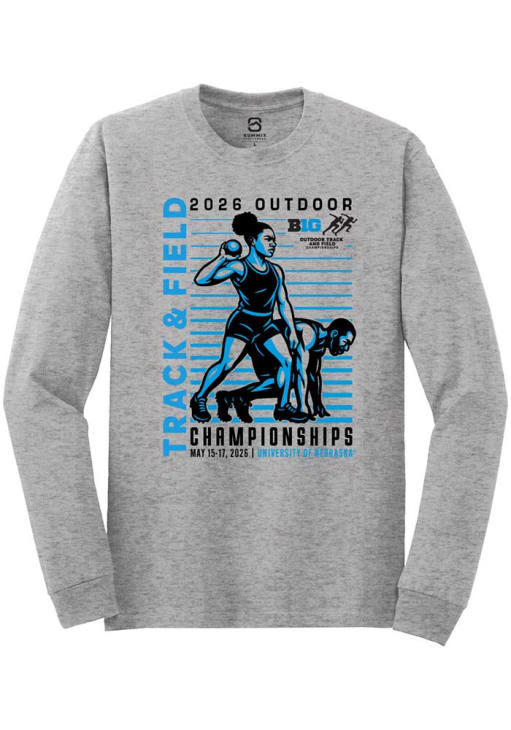 Show your Big Ten spirit in this Big Ten Grey T Shirt! This Big Ten 2026 Outdoor Track & Field Championships Long Sleeve T Shirt makes a great layer for cooler nights cheering on the Big Ten. Featuring a team graphic, this Big Ten Long Sleeve Tee is an essential addition for every fan. !