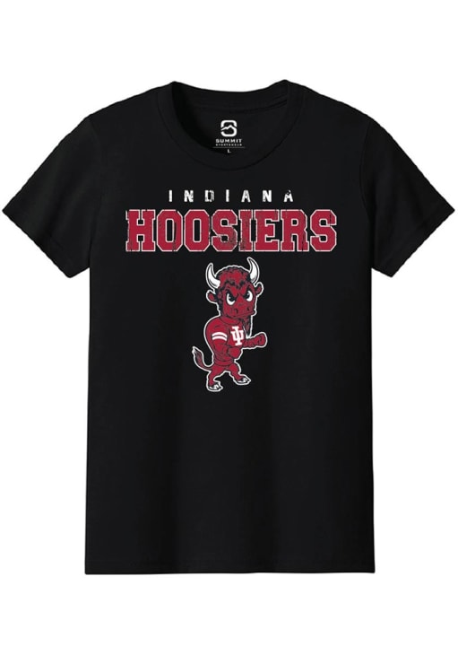 Product Details Product Details Topstitched ribbed-knit collarShoulder-to-shoulder self-fabric back neck tapeDouble-needle sleeves and bottom hem100% CottonImport, Domestic Officially Licensed Your future Indiana Hoosiers will be gameday ready in this BlackYouth Short Sleeve Tee. This Mascot T-Shirt features a Screen Printed Design.