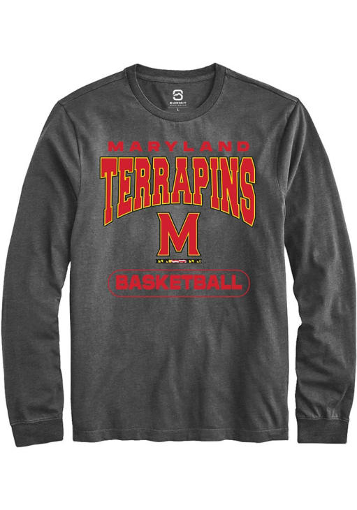 Show your Maryland Terrapins spirit in this Maryland Charcoal T Shirt! This Maryland Basketball Long Sleeve T Shirt makes a great layer for cooler nights cheering on the Terrapins. Featuring a digitally printed graphic, this Maryland Terrapins Long Sleeve Tee is an essential addition for every fan. Go Terps!