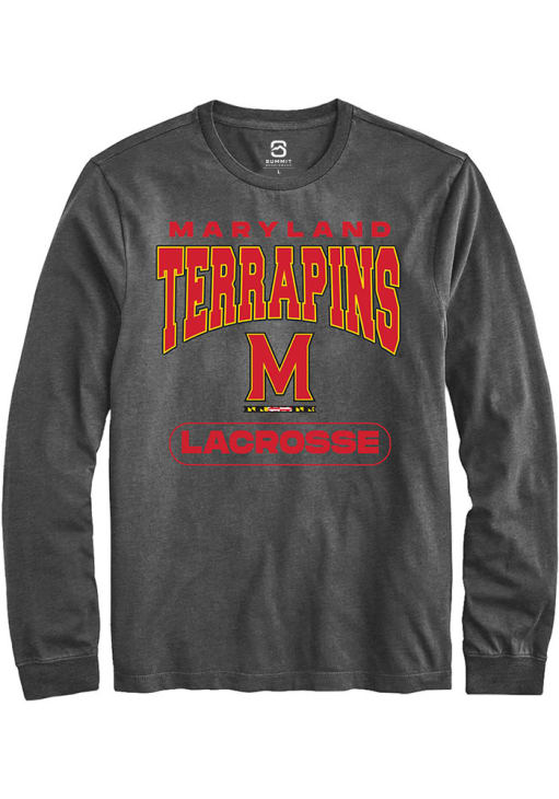 Show your Maryland Terrapins spirit in this Maryland Charcoal T Shirt! This Maryland Lacrosse Long Sleeve T Shirt makes a great layer for cooler nights cheering on the Terrapins. Featuring a digitally printed graphic, this Maryland Terrapins Long Sleeve Tee is an essential addition for every fan. Go Terps!