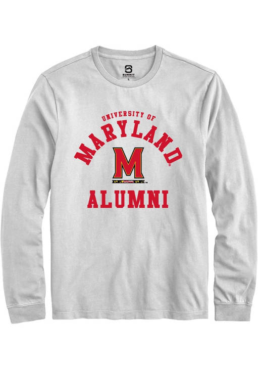 Show your Maryland Terrapins spirit in this Maryland White T Shirt! This Maryland Alumni Arch Long Sleeve T Shirt makes a great layer for cooler nights cheering on the Terrapins. Featuring a digitally printed graphic, this Maryland Terrapins Long Sleeve Tee is an essential addition for every fan. Go Terps!