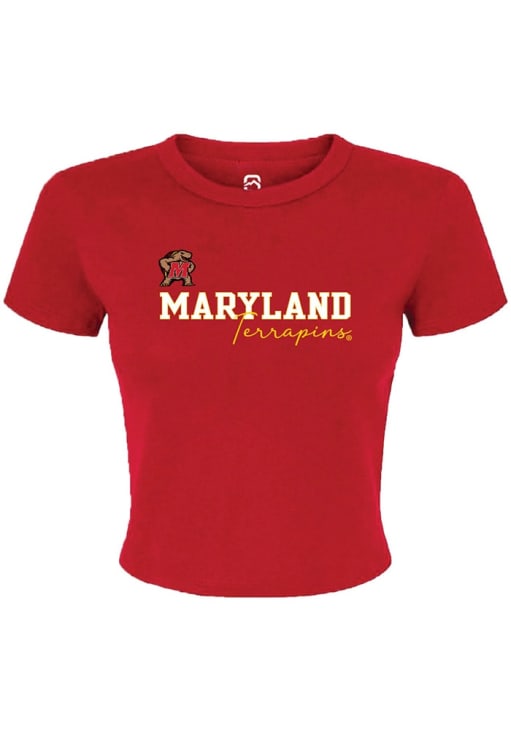 Display your team spirit with this remarkable Maryland Terrapins Red Rhinestone Short Sleeve T-Shirt! The Maryland Short Sleeve Tee showcases a rhinestone that truly sets it apart. Stand out from the crowd and proudly declare your allegiance to the Terrapins with this exceptional Red Maryland T-Shirt. Go Terps!