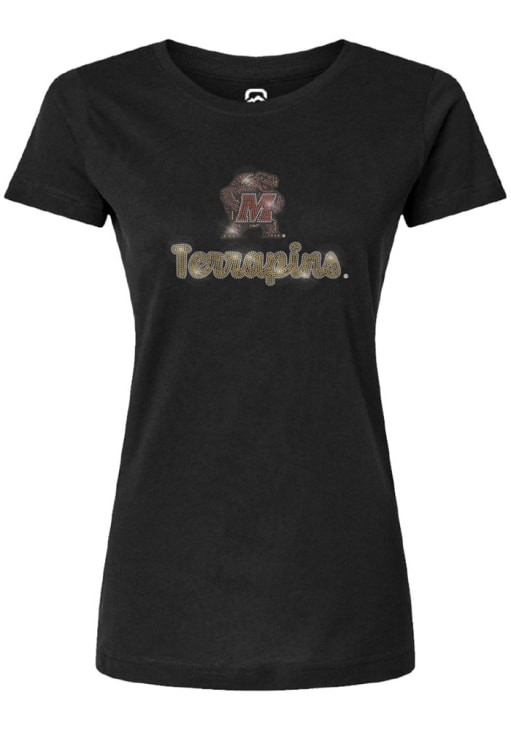 Display your team spirit with this remarkable Maryland Terrapins Black Stella Short Sleeve T-Shirt! The Maryland Short Sleeve Tee showcases a Rhinestone that truly sets it apart. Stand out from the crowd and proudly declare your allegiance to the Terrapins with this exceptional Black Maryland T-Shirt. Go Terps!