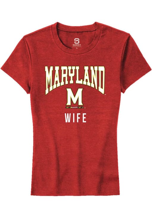 Display your team spirit with this remarkable Maryland Terrapins Red Wife Short Sleeve T-Shirt! The Maryland Short Sleeve Tee showcases a digitally printed graphic that truly sets it apart. Stand out from the crowd and proudly declare your allegiance to the Terrapins with this exceptional Red Maryland T-Shirt. Go Terps!