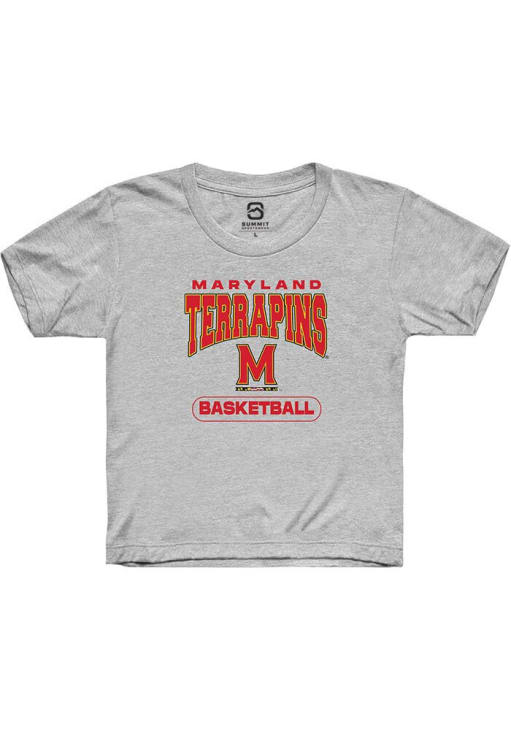 Product Details Product Details Short sleeve teeSide seam constructionPre-shrunkUnisex sizingTear away labelClassic Fit52% Cotton / 48% PolyesterHits At Hip Officially Licensed Your future Maryland Terrapins will be gameday ready in this GreyYouth Short Sleeve Tee. This Basketball T-Shirt features a digitally printed graphic.