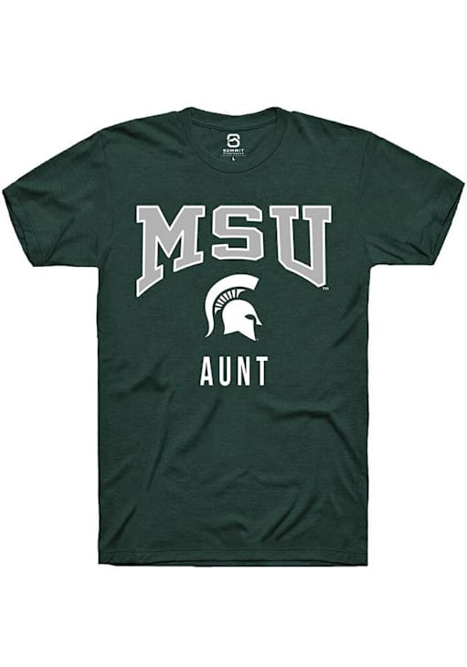 Display your team spirit with this remarkable Michigan State Spartans Green Aunt Short Sleeve T Shirt! The MSU Short Sleeve Tee showcases a digitally printed graphic that truly sets it apart. Stand out from the crowd and proudly declare your allegiance to the Spartans with this exceptional Green MSU T Shirt. Go Spartans!